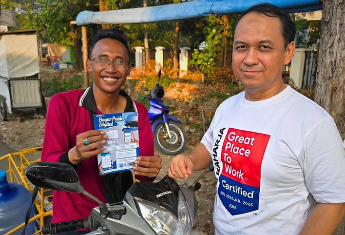 INDRAMAYU – Jasa Raharja Indramayu melakukan sosialisasi pembayaran Pajak Digital dengan membagikan flyer terkait aplikasi pembayaran pajak berbasis digital kepada para pengendara yang melintas di ruas jalan Ir. H. Djuanda Indramayu pada hari Senin, (02/09). Donny Irvanny selaku Kepala Perwakilan juga menyarankan para wajib pajak agar tetap taat dalam melakukan pembayaran pajak kendaraan sebelum jatuh tempo.